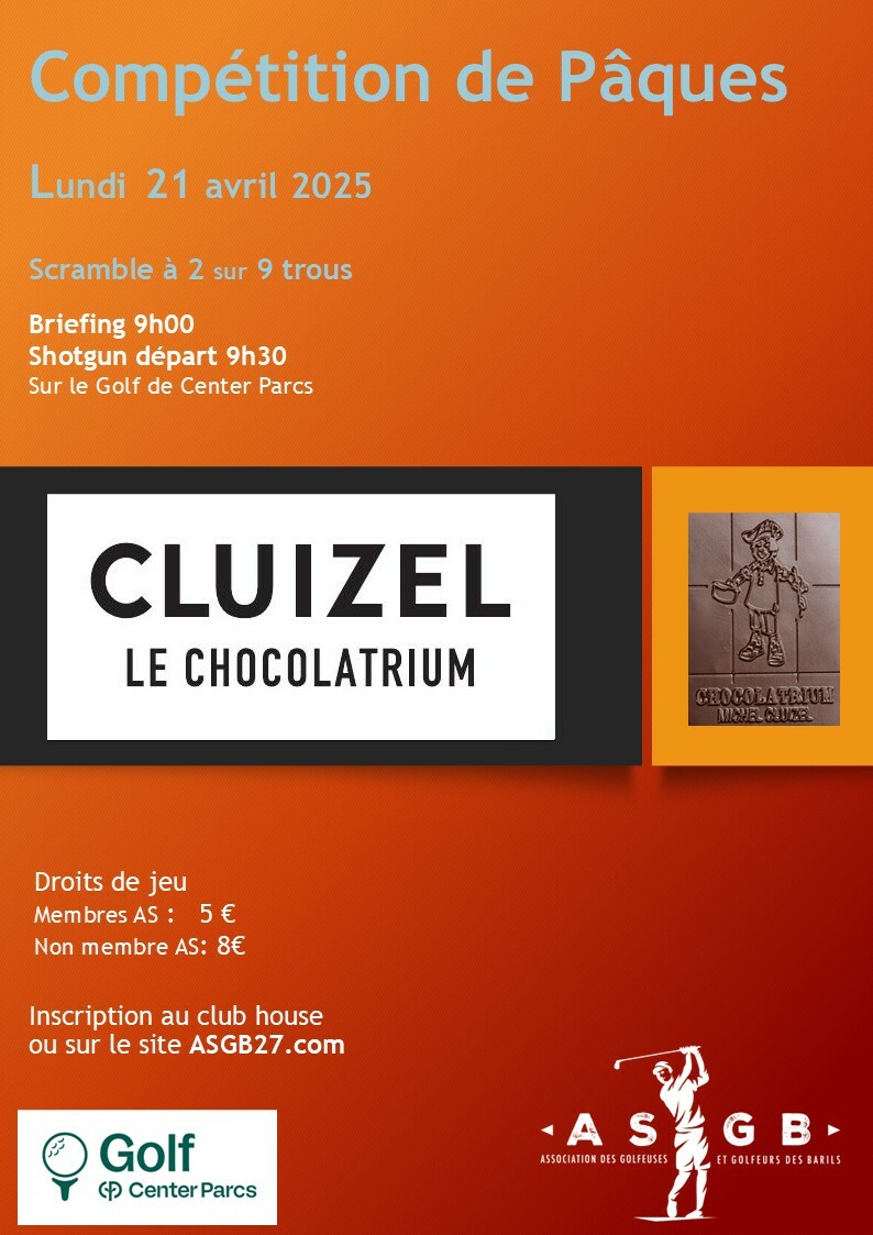 cette année la compétition de Pâques sponsorisée par CLUIZEL le chocolatrium se déroulera le Lundi 21 avril 2025